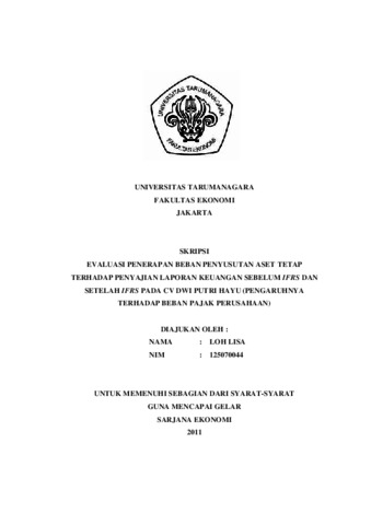 Lisa, Loh (2011) EVALUASI PENERAPAN BEBAN PENYUSUTAN ASET TETAP TERHADAP PENYAJIAN LAPORAN KEUANGAN SEBELUM IFRS DAN SETELAH IFRS PADA CV DWI PUTRI HAYU (PENGARUHNYA TERHADAP BEBAN PAJAK PERUSAHAAN). Skripsi thesis, Universitas Tarumanagara.