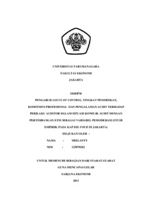 Mielanty, Mielanty (2011) PENGARUH LOCUS OF CONTROL, TINGKAT PENDIDIKAN, KOMITMEN PROFESIONAL DAN PENGALAMAN AUDIT TERHADAP PERILAKU AUDITOR DALAM SITUASI KONFLIK AUDIT DENGAN PERTIMBANGAN ETIS SEBAGAI VARIABEL PEMODERASI (STUDI EMPIRIK PADA KAP BIG FOUR DI JAKARTA). Skripsi thesis, Universitas Tarumanagara.