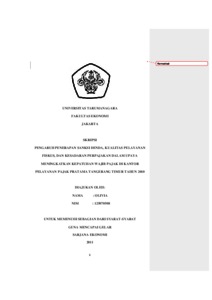 Olivia, Olivia (2011) PENGARUH PENERAPAN SANKSI DENDA, KUALITAS PELAYANAN FISKUS, DAN KESADARAN PERPAJAKAN DALAM UPAYA MENINGKATKAN KEPATUHAN WAJIB PAJAK DI KANTOR PELAYANAN PAJAK PRATAMA TANGERANG TIMUR TAHUN 2010. Skripsi thesis, Universitas Tarumanagara.