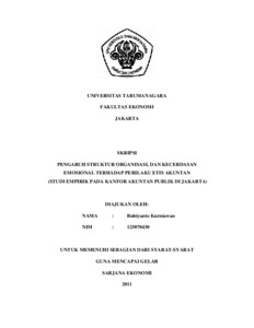 Kurniawan, Rubianto (2011) PENGARUH STRUKTUR ORGANISASI, DAN KECERDASAN EMOSIONAL TERHADAP PERILAKU ETIS AKUNTAN (STUDI EMPIRIK PADA KANTOR AKUNTAN PUBLIK DI JAKARTA). Skripsi thesis, Universitas Tarumanagara.