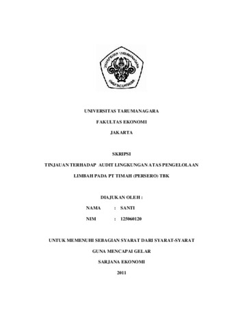 Santi, Santi (2011) TINJAUAN TERHADAP AUDIT LINGKUNGAN ATAS PENGELOLAAN LIMBAH PADA PT TIMAH (PERSERO) TBK. Skripsi thesis, Universitas Tarumanagara.