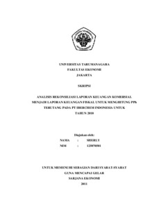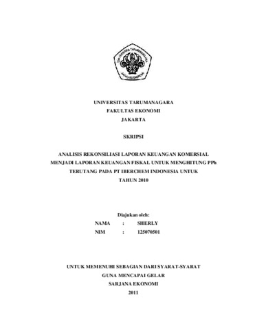 Sherly, Sherly (2011) ANALISIS REKONSILIASI LAPORAN KEUANGAN KOMERSIAL MENJADI LAPORAN KEUANGAN FISKAL UNTUK MENGHITUNG PPh TERUTANG PADA PT IBERCHEM INDONESIA UNTUK TAHUN 2010. Skripsi thesis, Universitas Tarumanagara.