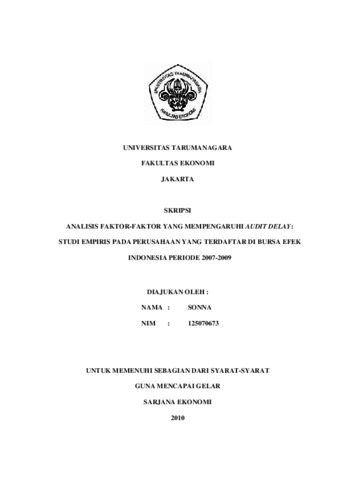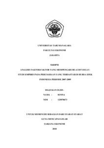 Sonna, Sonna (2011) ANALISIS FAKTOR-FAKTOR YANG MEMPENGARUHI AUDIT DELAY: STUDI EMPIRIS PADA PERUSAHAAN YANG TERDAFTAR DI BURSA EFEK INDONESIA PERIODE 2007-2009. Skripsi thesis, Universitas Tarumanagara.