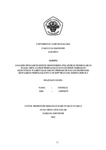 Stefilia, Stefilia (2011) ANALISIS PENGARUH SISTEM MONITORING PELAPORAN PEMBAYARAN PAJAK (MP3), SANKSI PERPAJAKAN DAN GENDER TERHADAP KEPATUHAN WAJIB PAJAK ORANG PRIBADI DI DALAM MEMENUHI KEWAJIBAN PERPAJAKANNYA DI KPP PRATAMA KEBON JERUK I. Skripsi thesis, Universitas Tarumanagara.