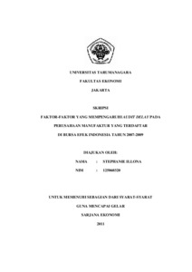 Illona, Stephanie (2011) FAKTOR-FAKTOR YANG MEMPENGARUHI AUDIT DELAY PADA PERUSAHAAN MANUFAKTUR YANG TERDAFTAR DI BURSA EFEK INDONESIA TAHUN 2007-2009. Skripsi thesis, Universitas Tarumanagara.