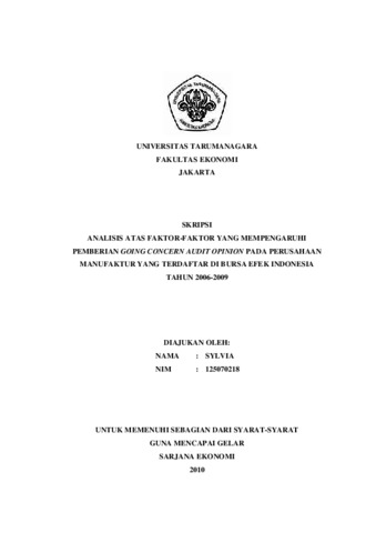 Sylvia, Sylvia (2011) ANALISIS ATAS FAKTOR-FAKTOR YANG MEMPENGARUHI PEMBERIAN GOING CONCERN AUDIT OPINION PADA PERUSAHAAN MANUFAKTUR YANG TERDAFTAR DI BURSA EFEK INDONESIA TAHUN 2006-2009. Skripsi thesis, Universitas Tarumanagara.