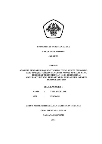 Angeline, Yesi (2011) ANALISIS PENGARUH LIQUIDITY RATIO, TOTAL ASSETS TURNOVER, DEBT TO EQUITY RATIO, DAN GROSS PROFIT TO SALES RATIO TERHADAP PERTUMBUHAN LABA PERUSAHAAN MANUFAKTUR YANG TERDAFTAR DI BURSA EFEK JAKARTA PERIODE 2007-2009. Skripsi thesis, Universitas Tarumanagara.