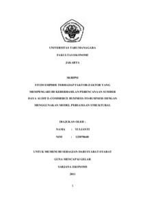 Yulianti, Yulianti (2011) STUDI EMPIRIS TERHADAP FAKTOR-FAKTOR YANG MEMPENGARUHI KEBERHASILAN PERENCANAAN SUMBER DAYA AUDIT E-COMMERCE BUSINESS-TO-BUSINESS DENGAN MENGGUNAKAN MODEL PERSAMAAN STRUKTURAL. Skripsi thesis, Universitas Tarumanagara.