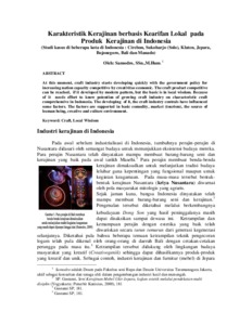 Samodro, Samodro (2012) Karakteristik Kerajinan berbasis Kearifan Lokal pada Produk Kerajinan di Indonesia. Karya Ilmiah Dosen. ISSN 978-979-9234-45-2