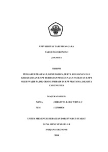 Widya, Birgitta Koes (2014) PENGARUH MANFAAT, KEMUDAHAN, SERTA KEAMANAN DAN KERAHASIAAN E-SPT TERHADAP PENGGUNAAN FASILITAS E-SPT OLEH WAJIB PAJAK ORANG PRIBADI DI KPP PRATAMA JAKARTA CAKUNG DUA. Skripsi thesis, Universitas Tarumanagara.