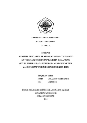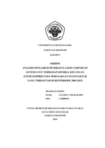 Telenkanho, Clasica (2014) ANALISIS PENGARUH PENERAPAN GOOD CORPORATE GOVERNANCE TERHADAP KINERJA KEUANGAN (STUDI EMPIRIS PADA PERUSAHAAN MANUFAKTUR YANG TERDAFTAR DI BEI PERIODE 2009-2013). Skripsi thesis, Universitas Tarumanagara.