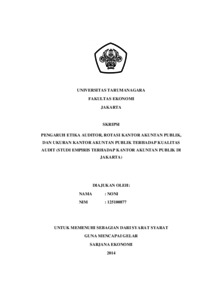 Noni, Noni (2014) PENGARUH ETIKA AUDITOR, ROTASI KANTOR AKUNTAN PUBLIK, DAN UKURAN KANTOR AKUNTAN PUBLIK TERHADAP KUALITAS AUDIT (STUDI EMPIRIS TERHADAP KANTOR AKUNTAN PUBLIK DI JAKARTA). Skripsi thesis, Universitas Tarumanagara.