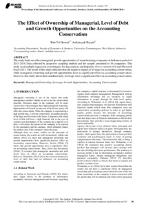 Rini, Prosiding (2021) The Effect of Ownership of Managerial, Level of Debt and Growth Opportunities on the Accounting Conservatism. The Effect of Ownership of Managerial, Level of Debt and Growth Opportunities on the Accounting Conservatism. ISSN ISSN : 2352-5398 / ISBN : 978-94-6239-413-1