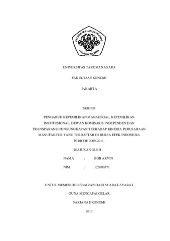 Arvin, Bob (2014) PENGARUH KEPEMILIKAN MANAJERIAL, KEPEMILIKAN INSTITUSIONAL, DEWAN KOMISARIS INDEPENDEN DAN TRANSPARANSI PENGUNGKAPAN TERHADAP KINERJA PERUSAHAAN MANUFAKTUR YANG TERDAFTAR DI BURSA EFEK INDONESIA PERIODE 2009-2011. Skripsi thesis, Universitas Tarumanagara.