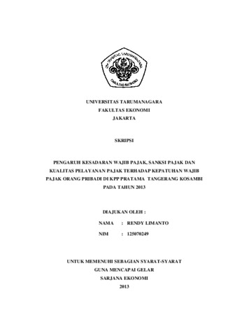 Limanto, Rendy (2013) PENGARUH KESADARAN WAJIB PAJAK, SANKSI PAJAK DAN KUALITAS PELAYANAN PAJAK TERHADAP KEPATUHAN WAJIB PAJAK ORANG PRIBADI DI KPP PRATAMA TANGERANG KOSAMBI PADA TAHUN 2013. Skripsi thesis, Universitas Tarumanagara.