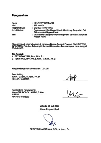 Stefano, Kennedy (2023) Perancangan dashboard untuk monitoring penjualan cat di Luckymart Nippon Paint. Skripsi thesis, Universitas Tarumanagara.