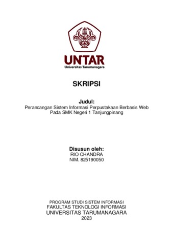 Chandra, Rio (2023) Perancangan sistem informasi perpustakaan berbasis web pada SMK Negeri 1 Tanjungpinang. Skripsi thesis, Universitas Tarumanagara.