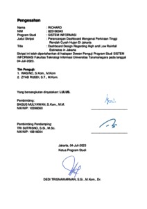 Richard, Richard (2023) Perancangan dashboard mengenai perkiraan tinggi rendah curah hujan di Jakarta. Skripsi thesis, Universitas Tarumanagara.