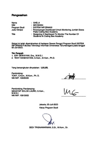 Shela, Shela (2023) Perancangan dashboard untuk monitoring jumlah siswa pada coding bee academy. Skripsi thesis, Universitas Tarumanagara.