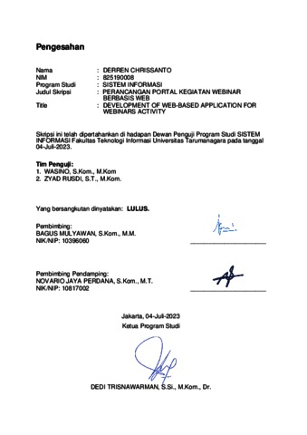 Chrissanto, Derren (2023) Perancangan portal kegiatan webinar berbasis web. Skripsi thesis, Universitas Tarumanagara.