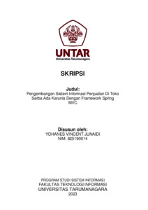 Junaidi, Yohanes Vincent (2023) Pengembangan sistem informasi penjualan di toko serba ada karunia dengan framework spring MVC. Skripsi thesis, Universitas Tarumanagara.