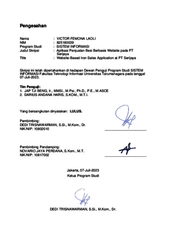 Laoli, Victor Femona (2023) Aplikasi penjualan besi berbasis website pada PT Serijaya. Skripsi thesis, Universitas Tarumanagara.