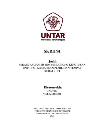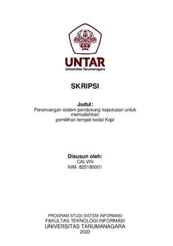 Calvin, Calvin (2023) Perancangan sistem pendukung keputusan untuk memudahkan pemilihan tempat kedai kopi. Skripsi thesis, Universitas Tarumanagara.
