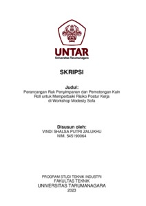 Zalukhu, Vindi Shalsa Putri (2023) Perancangan rak penyimpanan dan pemotongan kain roll untuk memperbaiki risiko postur kerja di workshop modesty sofa (T. Ind - 822). Skripsi thesis, Universitas Tarumanagara.