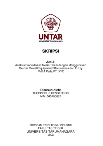 Henderson, Theodorus (2023) Analisis produktivitas mesin tekuk dengan menggunakan metode overall equipment effectiveness dan fuzzy FMEA pada PT. XYZ (T. Ind - 824). Skripsi thesis, Universitas Tarumanagara.