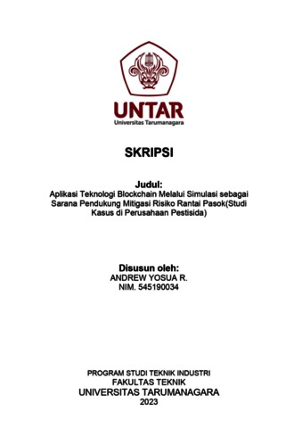 Yosua, Andrew (2023) Aplikasi teknologi blockchain melalui simulasi sebagai sarana pendukung mitigasi risiko rantai pasok(studi kasus di perusahaan pestisida) (T. Ind - 826). Skripsi thesis, Universitas Tarumanagara.