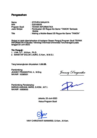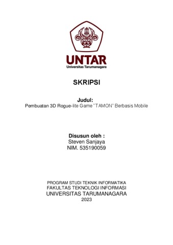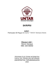 Sanjaya, Steven (2023) Pembuatan 3d rogue-lite game “tamon” berbasis mobile. Skripsi thesis, Universitas Tarumanagara.