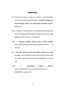 Bahan sembako adalah singkatan dari sembilan bahan pokok yang artinya diperlukan oleh masyarakat secara umum sebagai kebutuhan sehari – hari. Bahan sembako sangat beragam jenisnya seperti minyak, beras, susu, dan masih banyak lagi. Bahan sembako biasanya dapat ditemui di supermarket, toko eceran, maupun warung kecil. Supermarket, toko eceran, dan warung kecil menjadi penyedia banyak barang dan salah satunya bahan sembako untuk dibeli oleh masyarakat umum. Penyedia yang sangat memiliki banyak kebutuhan jenis bahan sembako biasanya terdapat di supermarket. Untuk supermarket dan toko eceran biasanya memiliki data stok barang masing – masing agar mengetahui jumlah barang mereka di rak penjualan. Pengecekan stok barang juga dilakukan untuk mengetahui tanggal kedaluwarsa, kualitas barang, dan lainnya. Metode Single Shot Multibox Detector sudah banyak digunakan untuk pengenalan objek atau pengenalan objek seperti aplikasi pengenalan benda, makhluk hidup, makanan, bahkan pengenalan wajah sekalipun. Kelebihan metode ini adalah kecepatan dan keamanan yang tidak kalah bagus dengan metode lain seperti YOLO dan Fast R�CNN. Jika ibandingkan, metode Mobilenet dapat jauh lebih tinggi keakuratannya dan kecepatan proses pengenalan objek. Kata kunci: Bahan Sembako, Mobilenet, Pengenalan Objek, Supermarket