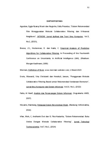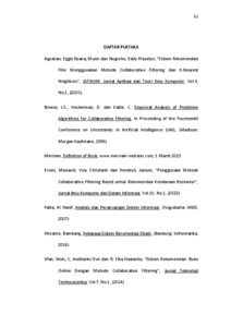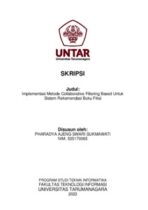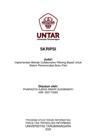 Buku merupakan hasil karya dari seseorang yang berisi tulisan – tulisan yang dimaksud untuk sebuah penerbitan. Terdapat 2 jenis buku yang telah beredar di masyarakat yaitu buku fiksi dan buku non fiksi. Data buku yang digunakan hanya berjenis fiksi. Tujuan dari pembuatan rancangan adalah untuk memberikan rekomendasi buku fiksi yang sesuai dengan judul yang akan menjadi input dalam sistem. Dengan adanya sistem rekomendasi ini diharapkan dapat membantu pengguna dalam pemilihan buku berdasarkan rating buku. Sistem rekomendasi buku dibuat menggunakan bahasa pemrograman python berbasis website dan framework Streamlit sebagai tampilan antarmuka. Sistem rekomendasi buku fiksi dibuat menggunakan salah satu metode sistem rekomendasi yaitu Item Based Collaborative Filtering. Data yang digunakan dalam sistem rekomendasi buku fiksi berjumlah 742 data buku dengan 888 pengguna yang telah memberi rating. Kata Kunci: Book, Collaborative Filtering, Item Based, Pearson Correlation, Recommendation System