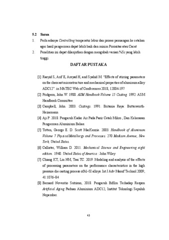Penelitian ini menginvestigasi efek dari variasi suhu peleburan terhadap sifat mekanik ADC12, sebuah paduan aluminium yang umum digunakan dalam aplikasi otomotif dan rumah tangga. Limbah aluminium dan bongkahan murni dilebur pada suhu yang berbeda (660°C, 670°C, 680°C) dan Si ditambahkan pada persentase yang bervariasi (10%, 11%, 12%) menggunakan tungku cetakan dan proses pengecoran. Analisis mikrostruktur, spektrometri, dan pengujian tarik dilakukan untuk mengevaluasi kekuatan tarik, pengerasan regangan, mikrostruktur, dan komposisi paduan tersebut. Hasil penelitian menunjukkan bahwa peningkatan suhu dan persentase Si meningkatkan kekuatan tarik, yang berkorelasi dengan kekuatan luluh. Pengujian tarik mengungkapkan peningkatan keseluruhan pada pengecoran Al + Si, dengan beberapa penurunan pada tingkat tertentu. Kekuatan tarik tertinggi diamati pada suhu 670°C dengan 10% Si (127.12 Nf/mm²), sementara yang terendah adalah pada suhu 680°C dengan 10% Si (42.76 Nf/mm²). Analisis mikrostruktur mengidentifikasi perbedaan signifikan, termasuk fase α-Al dan Si Eutektik, yang dipengaruhi oleh mikrostruktur dan komposisi kimia. Peningkatan suhu peleburan menghasilkan struktur silikon yang lebih halus. Kata kunci: pengecoran aluminium, suhu pengecoran, mikrostruktur, kekuatan tarik, pengerasan regangan