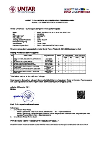 Sudiro, Amad Surat Tugas Mengajar Universitas Tarumanagara. Universitas Tarumanagara.