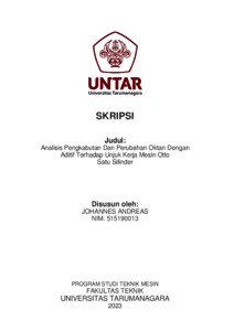 Andreas, Johannes (2023) Analisis pengkabutan dan perubahan oktan dengan aditif terhadap unjuk kerja mesin otto satu silinder (TM - 1332). Skripsi thesis, Universitas Tarumanagara.