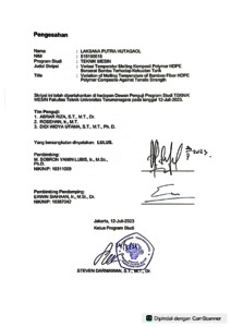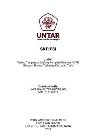 Hutagaol, Laksana Putra (2023) Variasi temperatur melting komposit polymer hdpe berserat bambu terhadap kekuatan tarik (TM - 1334). Skripsi thesis, Universitas Tarumanagara.