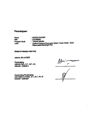 Sachio, Marco (2023) Analisa pressure drop pada sistem turbin aksial skala laboratoium - studi kasus pada discharge pipe (TM - 1353). Skripsi thesis, Universitas Tarumanagara.