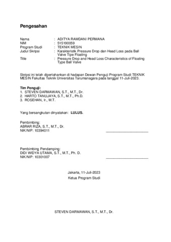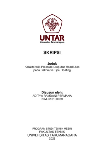 Permana, Aditya Ramdani (2023) Karakteristik pressure drop dan head loss pada ball valve tipe floating (TM - 1354). Skripsi thesis, Universitas Tarumanagara.