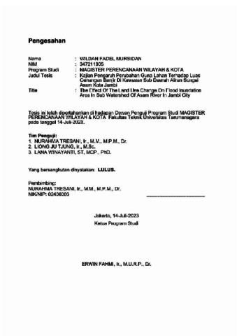 Mursidan, Wildan Fadel (2023) Kajian pengaruh perubahan guna lahan terhadap luas genangan banjir di kawasan sub daerah aliran sungai asam kota Jambi. Masters thesis, Universitas Tarumanagara.