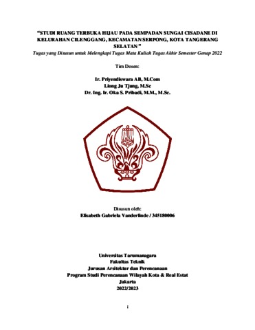Linde, Elisabeth Gabriela Van Der (2023) Studi ruang terbuka hijau di sempadan sungai Cisadane kelurahan Cilenggang, kecamatan Serpong, kota Tangerang Selatan. Skripsi thesis, Universitas Tarumanagara.