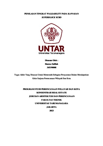 Zulfiah, Hanna (2023) Penilaian tingkat walkability pada kawasan superblock Sudirman central business district (SCBD). Skripsi thesis, Universitas Tarumanagara.