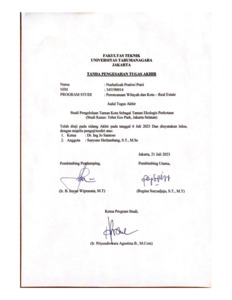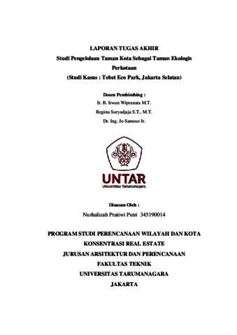 Putri, Nurhalizah Pratiwi (2023) Studi pengelolaan taman kota sebagai taman ekologis perkotaan (studi kasus: Tebet Eco Park, Jakarta Selatan). Skripsi thesis, Universitas Tarumanagara.