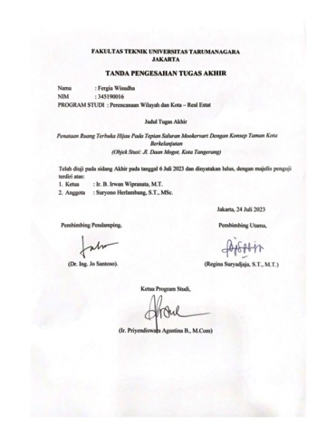 Wisudha, Fergia (2023) Penataan ruang terbuka hijau pada tepian saluran mookervart dengan konsep taman kota berkelanjutan (objek studi: jl. Daan Mogot, kota Tangerang). Skripsi thesis, Universitas Tarumanagara.