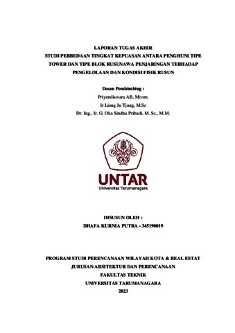 Putra, Dhafa Kurnia (2023) Studi perbedaan tingkat kepuasan antara penghuni tipe tower dan tipe blok rusunawa Penjaringan terhadap pengelolaan dan kondisi fisik rusun. Skripsi thesis, Universitas Tarumanagara.