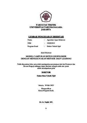 Setiawan, Agustinus Agus (2023) Model campuran beton geopolimer dengan menggunakan metode deep learning. Doctoral thesis, Universitas Tarumanagara.