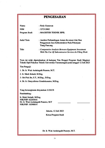 Gunawan, Farly (2023) Analisis perbandingan antara investasi alat dan penggunaan jasa subkontraktor pada pekerjaan tiang pancang. Masters thesis, Universitas Tarumanagara.