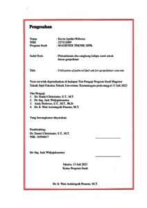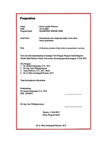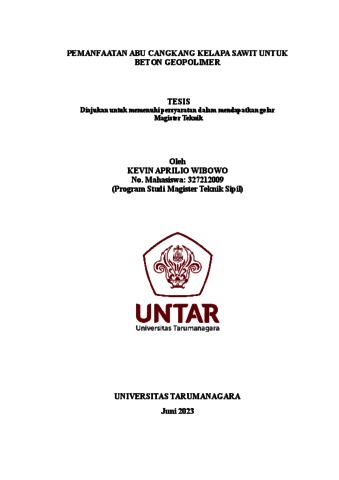 Wibowo, Kevin Aprilio (2023) Pemanfaatan abu cangkang kelapa sawit untuk beton geopolimer. Masters thesis, Universitas Tarumanagara.