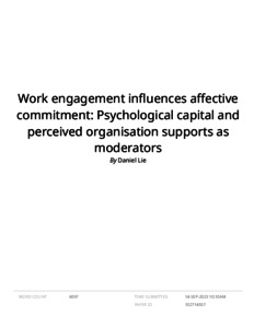 Daniel Lie1*, Pertama and Kiky Dwi Hapsari Saraswati2, Kedua and David Sugianto Li3*, Ketiga WORK ENGAGEMENT INFLUENCES AFFECTIVE COMMITMENT: PSYCHOLOGICAL CAPITAL AND PERCEIVED ORGANISATION SUPPORT AS MODERATORS. WORK ENGAGEMENT INFLUENCES AFFECTIVE COMMITMENT: PSYCHOLOGICAL CAPITAL AND PERCEIVED ORGANISATION SUPPORT AS MODERATORS.