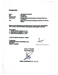 Santo, Jen Sen Chiu (2023) Persepsi masyarakat kota bogor terhadap sistem buy the service. Skripsi thesis, Universitas Tarumanagara.